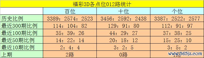 个位分析:该位最近10期开出了3个0路号码、5个1路号码、2个2路号码,1路号码热出,2路号码走冷。本期排斥1路号码,参考号码:8。